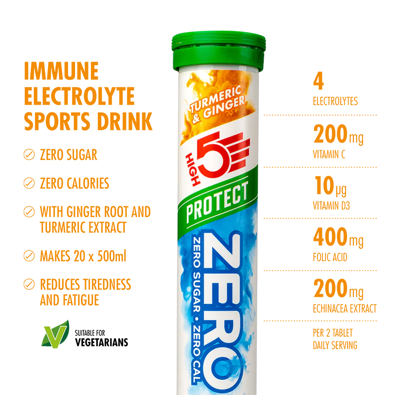 Key ingredients Vitamin C, Vitamin D3 and Folic Acid Active ingredients Electrolytes: Sodium, Magnesium, Potassium & Chloride ZERO Protect Turmeric & Ginger: Acidity Regulators (Citric Acid, Malic Acid), Sodium Bicarbonate, Firming Agent (Sorbitols), Natural Flavourings, Sodium Citrate, Potassium Citrate, L-Ascorbic Acid (Vitamin C), Curcuma Rhisome Extract (Curcuma Longa L.), Ginger Roots Extract (Zingiber officinale Roscoe), Sweetener (Sucralose), Leucine, Cholecalciferol (Vitamin D), Sodium Chloride, Folic Acid.