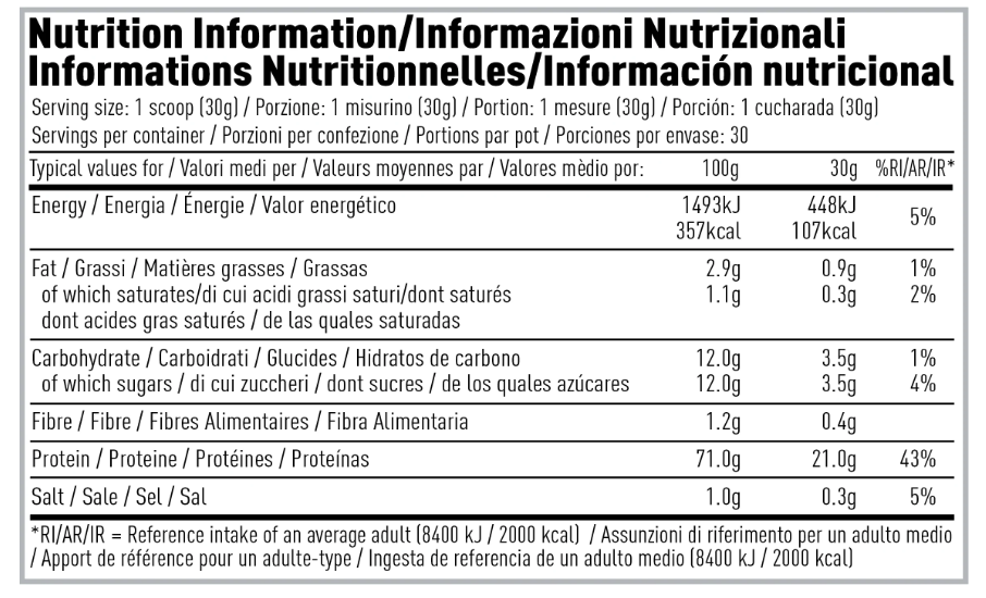 Our great tasting Whey Protein mixes instantly, helps support lean muscle growth, tastes fantastic and is gluten free. Suitable for vegetarians, the 21-22g protein per serving should be a staple for anyone involved in regular sport and exercise. In sports science, it is widely accepted that athletes, due to their high level of training, can require a greater intake of protein to help support the growth and maintenance of lean muscle.  In addition to your daily meals, consuming 1-2 shakes daily is a great way to increase your overall protein and calorie intake to support health and meet performance goals.