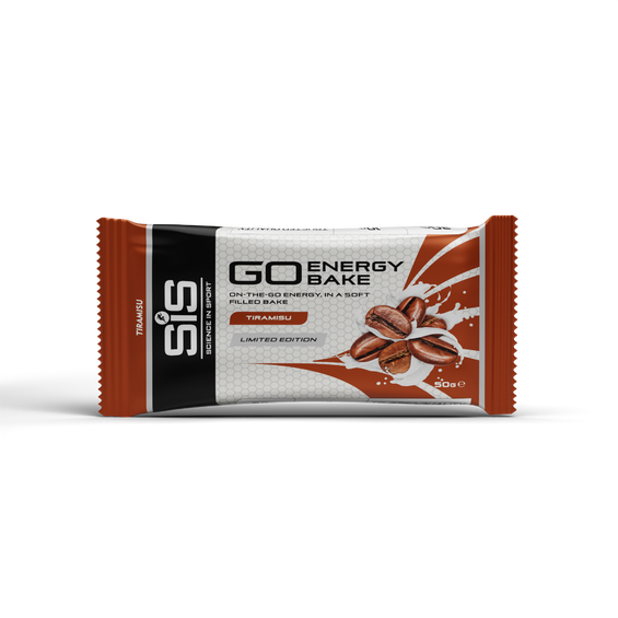 NUTRI SIS GO Energy Bake – Tiramisu 50g 2 to 1 carbohydrate ratio in a soft filled bake 190 calories per serving Unique texture provides a great carbohydrate alternative to consume during exercise About GO Energy Bake GO Energy Bake adopts a scientific approach to energy bars, delivering 30 grams of carbohydrate in a soft filled bake. Each bake has a fruit centre providing 10g fructose. To support performance and meet the demands of exercise, fuelling requirements for long endurance events would be advised as 60-90g of carbohydrate per hour. The Science in Sport GO Energy Bake can be used to meet these demands, alongside other products in the Science in Sport GO Range. The unique, soft baked texture provides an easy to eat option, with all the performance benefits of carbohydrate fuelling. Depleting your carbohydrate stores during exercise is one of the major causes of fatigue. Delivering additional carbohydrate during exercise is known to improve performance, race times and delay the onset of fatigue. Research has shown that carbohydrate from gels, drinks and bars can all be utilised at similar rates, and as such, SiS GO Energy Bake provides an alternative, easily digestible format of carbohydrate to consume during exercise. Suitable For: Vegetarians DIRECTIONS FOR USE Consume 1-2 bars per hour during prolonged exercise Take with other SiS products to meet hourly carbohydrate requirements during exercise (60 – 90g) Designed to fit easily in jersey pockets, cycle bags and waist packs, simply tear open the packaging and consume *Reference Intake of an average adult (8,400kJ/2,000kcal).